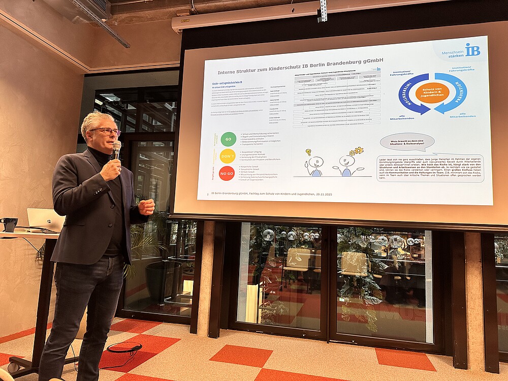 Am 20. November 2025 fand unser diesjähriger Kinderschutzfachtag statt, der unter dem Motto „Schutz für Kinder und Jugendliche“ stand. Ziel des Tages war es, Verantwortung, Herausforderungen und Handlungsmöglichkeiten im Kinderschutz zu beleuchten und die Fachkräfte unserer Einrichtungen zu stärken. Niels Spellbrink und Franziska Schot eröffneten die Veranstaltung mit einer Einführung, in der sie die Situation in den Einrichtungen des IBs darstellten und die Verantwortung aller Beteiligten betonten. Dabei wurde deutlich, dass Kinderschutz eine gemeinsame Aufgabe ist, die sowohl die Geschäftsführung und die Leitung der Einrichtungen als auch jede einzelne Mitarbeiterin und jeden einzelnen Mitarbeiter betrifft. Es ging darum, die internen Strukturen, präventiven Maßnahmen und die Verfahren im Umgang mit Kinderschutzfällen zu verstehen, um im Ernstfall angemessen reagieren zu können.